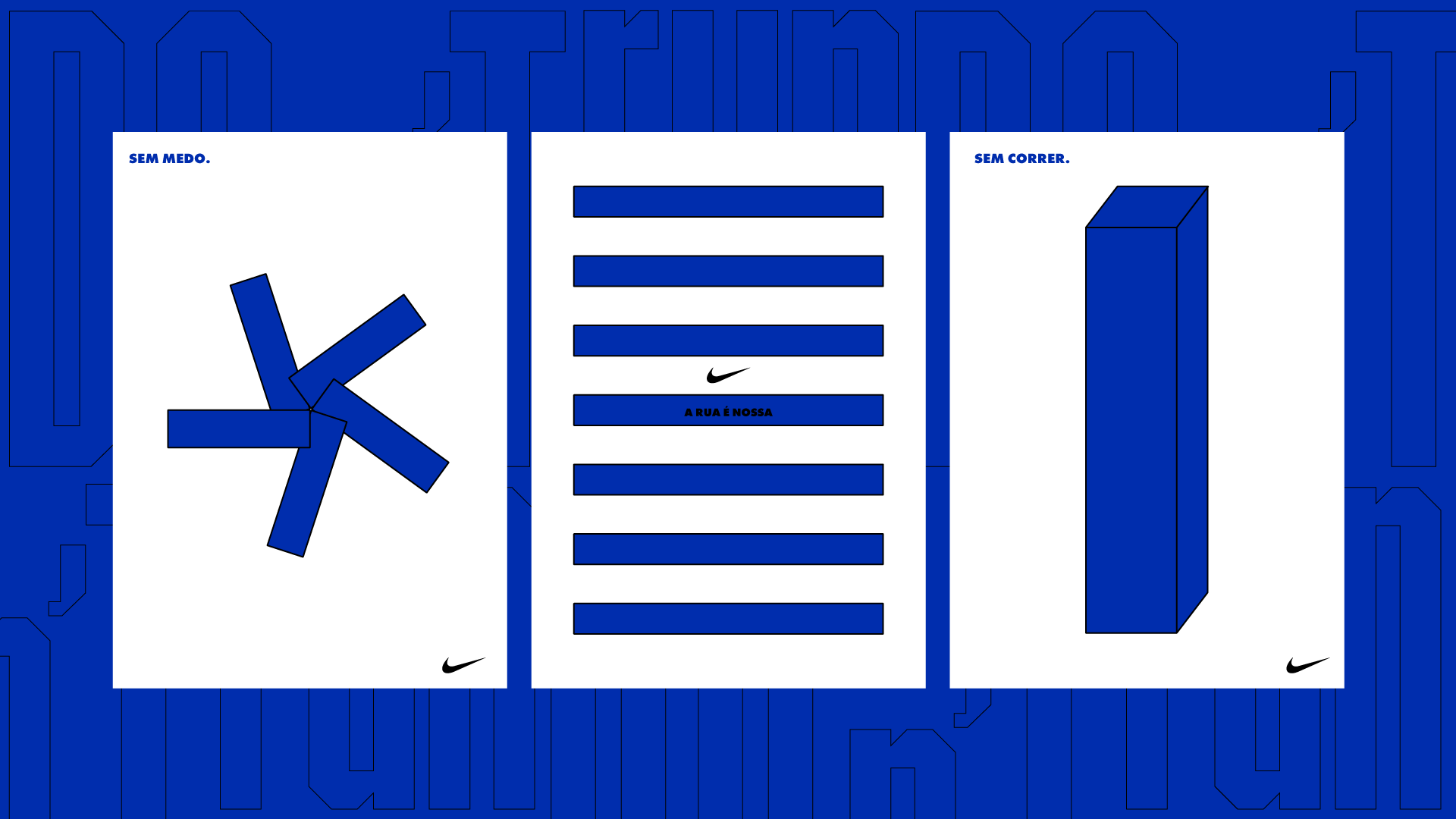 The branding project proposes a new packaging for NIKE sneakers, positioning itself and starting a movement of occupation of women in the streets, from homages to other women who, not coincidentally, give name to several streets of the city of Rio de Janeiro. The idea is to propose a new configuration in which women should feel free and comfortable to move around, without having to run. With direct references to the urban environment, both in colors and graphics, besides the experimental manipulation of typography, the goal is to bring the experience of the street, with effects of depth, flatness and continuity.